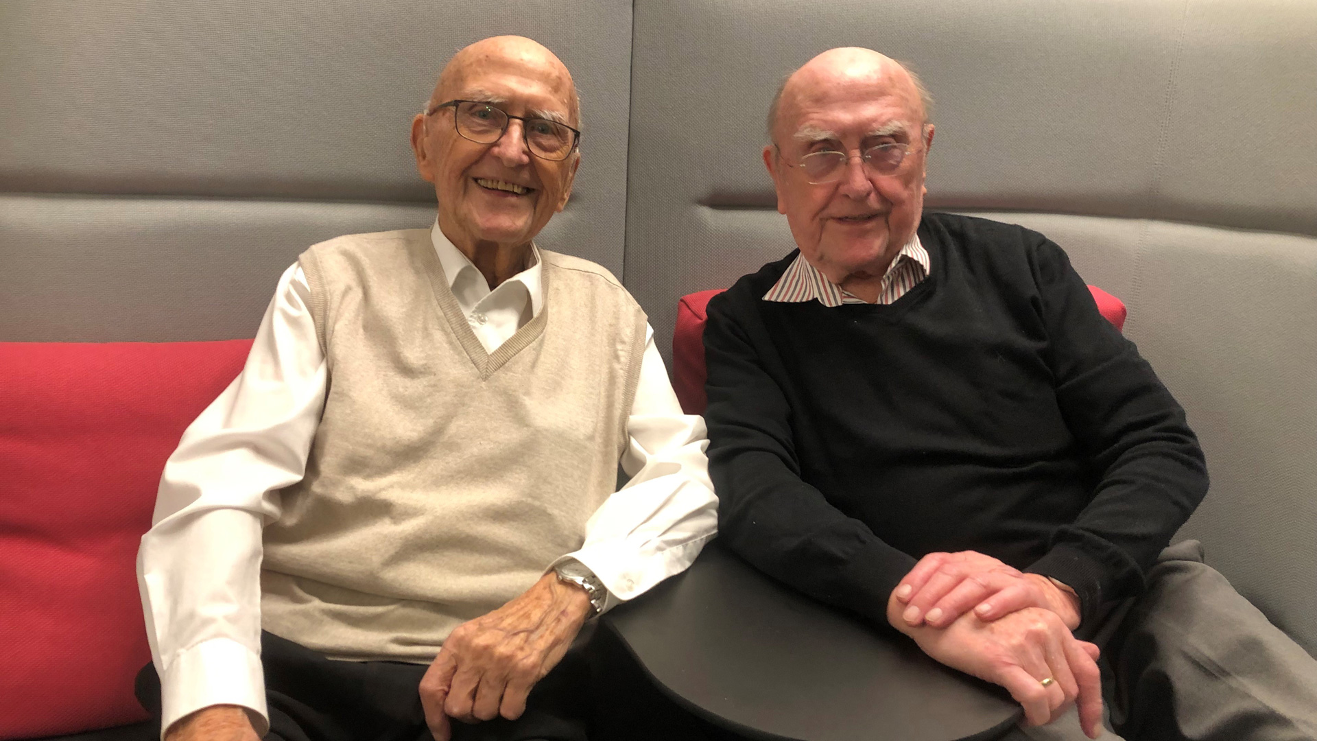 Beide sitzen bereits vergnügt auf ihren Rollatoren vorm Eingang der WHW 1897 in der Behnkenkammer. Natürlich überpünktlich, mit dem Smartphone in der Hand. Heute wollen sie von ihrem bewegten Leben erzählen. Günter und Karlheinz Haber sehen sich auch mit 95 Jahren noch erstaunlich ähnlich. Das Haar schütter, beide tragen Brille, beige Windjacken und ein weißes Hemd. Der Schalk blitzt aus ihren wachen Augen. "Den Humor haben wir nie verloren", sagt Günter Haber und lächelt. "Wir haben den Krieg, den Wiederaufbau Hamburgs, die Währungsunion und so vieles mehr erlebt. Das Wichtigste ist doch, dass man nie verzagt und fröhlich bleibt", sagt auch Bruder Karlheinz. Beide blicken heute auf ein reiches Leben zurück mit jeweils zwei erwachsenen Kindern, mehreren Enkeln und Urenkeln.