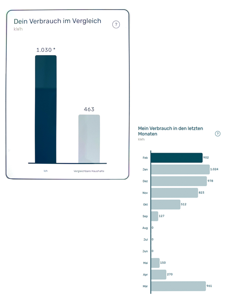 Ihr Objekt wurde bereits ausgestattet und Sie haben die App installiert und sich registriert, dann sehen Sie den Verbrauch des letzten Monats und rechts daneben den durchschnittlichen Verbrauch des Vorjahres. Hierbei handelt es sich tatsächlich nur um den Durchschnittsverbrauch des vorangegangen Abrechnungsjahres, da hier noch keine monatlichen Werte vorlagen. Dies ist also im Vergleich noch nicht repräsentativ. Das wird sich im Verlauf des nächsten Jahres besser darstellen lassen, da dann die monatlichen Werte vergleichbar dargestellt werden können.
